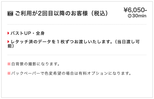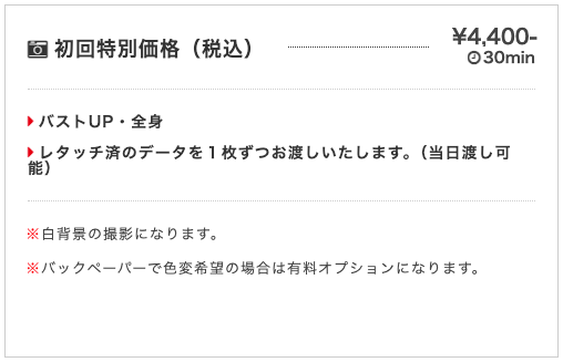 弊社のカメラマンが撮影を担当する場合のお値段。